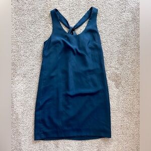 J.Crew shift dress silky dress solid blue fully lined twist knot back size 4