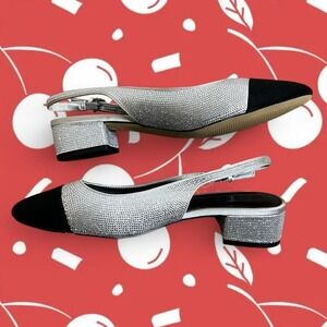 J.Crew silver crystal and black almond-toe slingback heels- size 8