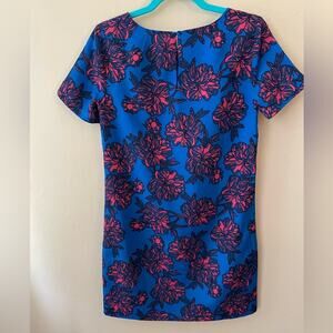 J.Crew size 0 blue floral shift dress short sleeve bright colorful mini casual