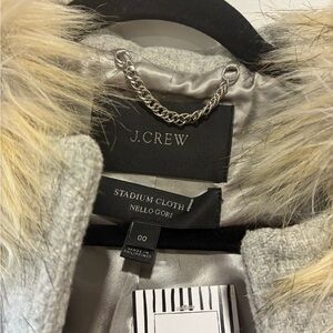 J.Crew stadium cloth wool jacket with faux fur hood size 00