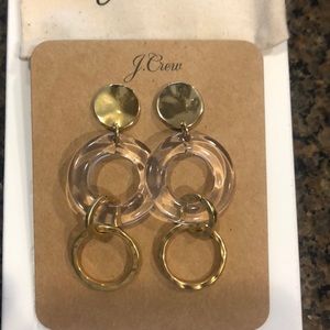 J.Crew brand new never been worn statement earrings! Gold and clear disks. Comes with a duster bag.