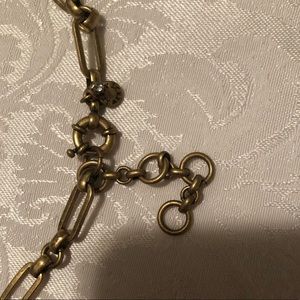 Sage green and grayish stones on antique gold finish link chain. Adjustable