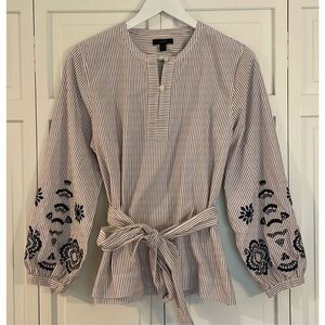 J.Crew striped embroidered tie front blouse size M