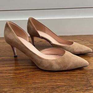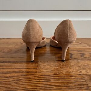 Tan suede heel with pointed toe. Size 7.5. Worn but still in good condition.