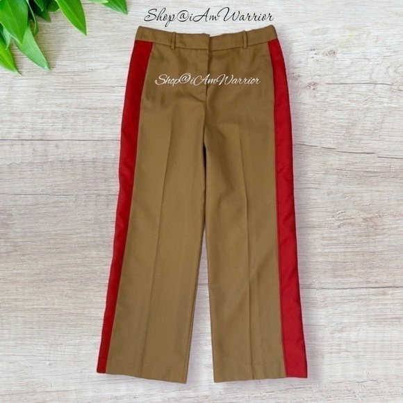 J.Crew tan wide-leg pant with red tuxedo stripe *shop@iamwarrior