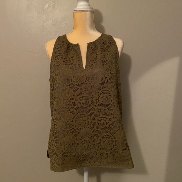 Olive colored sleeveless lace top from JCrew. Size 8. Never worn. Very pretty!!