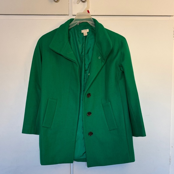Elevate your wardrobe with this vibrant green pea coat from J Crew for warmth and style.