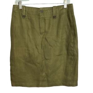 J.Crew women’s army, green linen front pocket skirt size 6