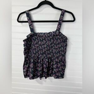 J.Crew women’s navy Twilight Berry print satin peplum tank top. Size XL. Stretchy smocked bodice. NWT. Runs small, please see measurements. Bra friendly straps! This cropped tank would look adorable with high waisted jeans.