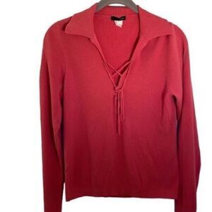 J.Crew women’s ribbed long sleeve knit front tie, V-neck top size medium