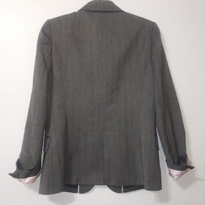 J.Crew wool 2 button pinstripe blazer with pink and white stripe lined arms for a chic cute cuffed look.