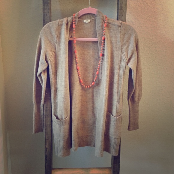 J.crew long sleeve wool cardigan with front pockets. Long enough to go past hip line, and a great color to match anything!