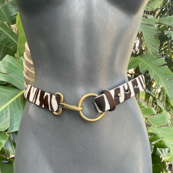 J.Crew zebra print calf hair, leather belt
