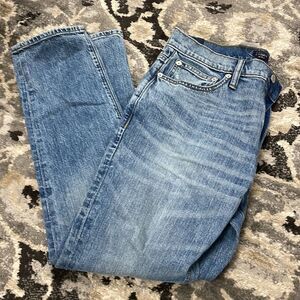Slim through the hip and thigh, with a narrow, tapered leg.