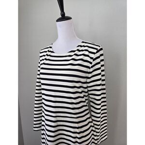 Chic, classic, and easy to style—this black & white striped J.Crew midi dress (size 12) is a wardrobe MVP. Made from 100% cotton, it's breathable and comfy enough for summer strolls or office hours. Featuring a flattering crew neckline, back zipper closure, and timeless horizontal stripes, it’s got that effortlessly polished French-girl vibe. The long sleeves and structured fit make it a great transitional piece for layering from summer to fall. Pre-owned in good condition—no stains, rips, or flaws noted. Style it with sneakers, sandals, or ankle boots for endless outfit options.