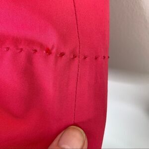 This crisp cotton J. Crew skirt features a wide waistband, front pockets, side-zip and decorative stitching along the hem. It is fully lined and has a very smooth hand. There is one tiny dot of something on the waistband near the zipper as shown, but it will be hard to see when worn. Consider this your pop of color, vivid dopamine item. For work/office/career or fun! Please see photos for additional details. Waist 30” Length 22”