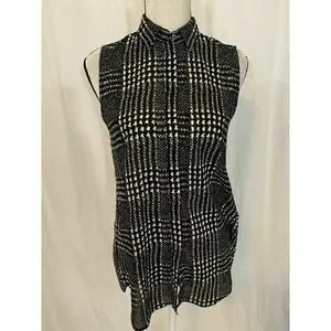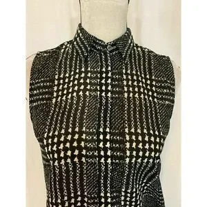 J Crew Womens Black White Button Down Collared Tank Top Blouse 4 Small. Shipped with USPS First Class Package. Length 27, bust 36, waist 38, hips 43. Measurements in inches. Perfect condition. No rips holes stains or fading. Smoke and pet free home. Fast shipping.