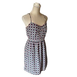 J. Crew Factory Sundress. Geometric floral print. Spaghetti straps. Fit and flare. Sweetheart neckline. Lined. Has pockets.