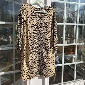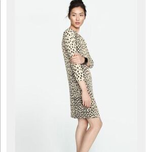 Gorgeous j crew cheetah shift dress. Worn once, in perfect condition besides hem. Hem stitching was removed for added length as seen in photo. Pockets. Pullover style.