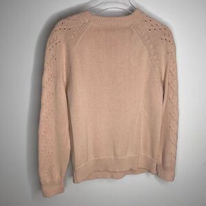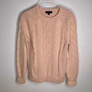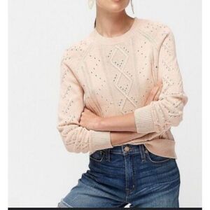 J.Crew Cotton Cable Knit Pointelle Long Sleeve Crew Neck Sweater Pink S Small