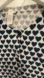 Adorable cardigan with navy heart pattern. Soft and comfortable. Ideal for layering.