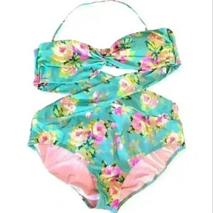 J.Crew Crisscross Cutout Bandeau One-Piece In Rose Garden Plus Size 22 NWTS.