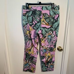 J. Crew EUC purple tropical palm skimmer cropped pants Size 10