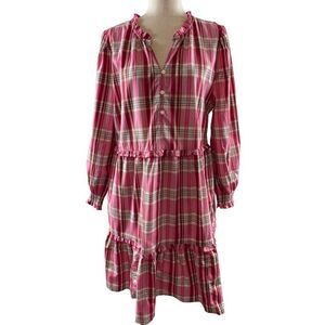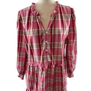 J.Crew Factory Ruffle Trim Pink Plaid Mini Dress Size 16 Prairie Cottage Modest