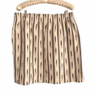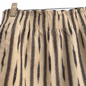 Soft cotton in an ikat striped design. Slightly ruffled Elastic waist. Lined. Great preowned condition- no flaws- like new.