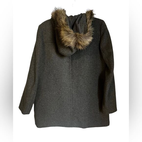 J Crew Mercantile Vail Wool Parka Heather Grey Faux Fur Trim Size 6 J6178 WARM.