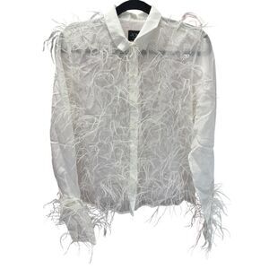 Turn heads in this limited-edition J.Crew Collection blouse — a dreamy, floaty piece crafted from 100% viscose and adorned with real feather embellishments for a show-stopping finish. This is not your everyday white shirt: the sheer, lightweight chiffon and luxe texture give it a couture edge that’s perfect for parties, nights out, or styled effortlessly with denim.