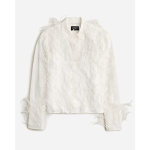 J.Crew Feather Embellished Button-Up White Shirt Size 8 Viscose Blouse