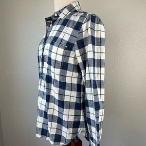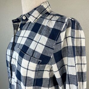 Super cute and cozy flannel by J. Crew featuring a half button down design. It measures 20 inches armpit to armpit and 25 inches from shoulder to hem.