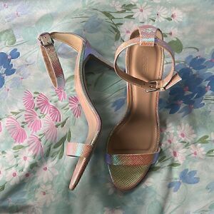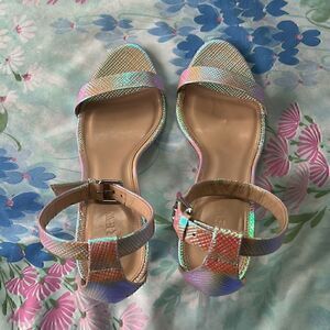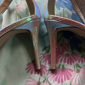 Show stopping, you don’t have to worry if these will match because they are basically shiny rainbows. In excellent condition NWOT. 2.75” heel, no platform. Please know your size in this style and brand. They are marked a 9.5. Made in Italy.