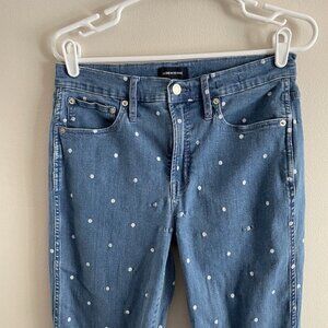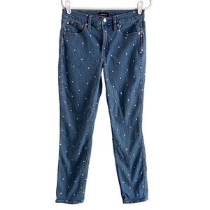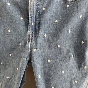 J.Crew/Jeans Women 28 TALL Blue Polka Dot Medium Wash Vintage Straight Jean.