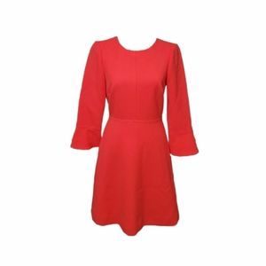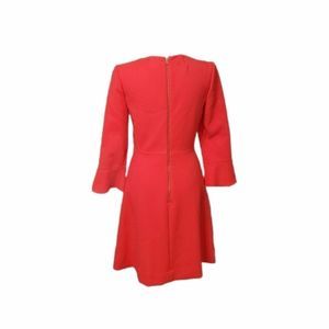 NWOT. As seen in pictures the tag fell off. In excellent condition. Jewel neckline with sleeves. End of sleeves flare. Zip up in back. Material Content: 64% Polyester, 34% Viscose, 2% Elastane. CORAL PINK COLOR. L: 35" B: 16" W: 13.5" Sleeve L: 20"