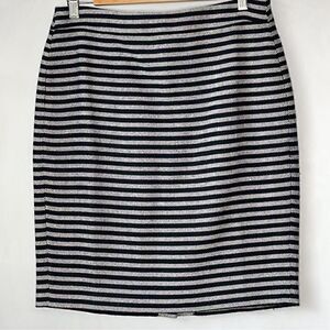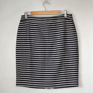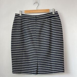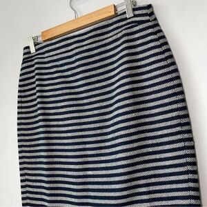 This J. Crew Knit Wool Blend Stripped Skirt is in a white and navy and in Excellent condition.