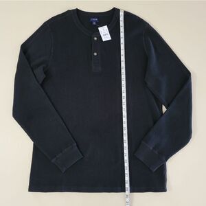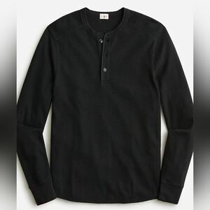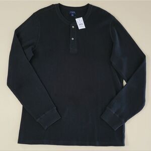 J.Crew Men's Black Long Sleeve Crewneck Waffle-knit Henley Shirt