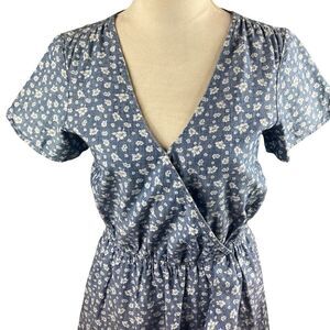 J. Crew Mercantile V-Neck Short Sleeve Denim-Look Dress W/White Flowers, Size XS