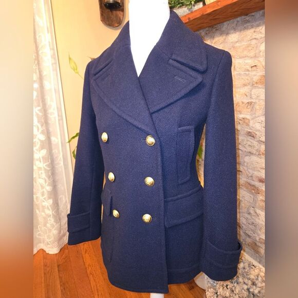 Stylish J.Crew jacket in rich midnight blue. Crafted from premium stadium cloth for warmth in excellent condition women's size 0 made well.