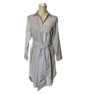 J.Crew Mixed Stripe Classic Fit Poplin Button Down Shirt Dress with Belt Size 2