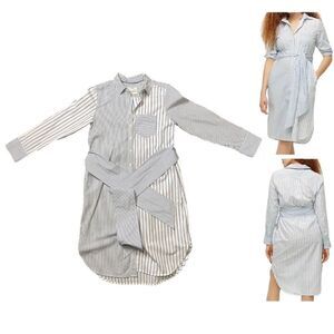 J.Crew Mixed Stripe Classic Fit Shirt Dress l. Clean, crisp and understated with a little wink thanks to the cute mixed stripes that make this dress career ready with a fun twist. The is a dress version of their classic-fit shirt, with a little extra room so it's fitted but not too fitted. Includes removable belt. 100% Cotton. Long sleeves. Button closure. Pockets. Machine wash. Measurements in pictures as: 18” bust & waist; 40” length.