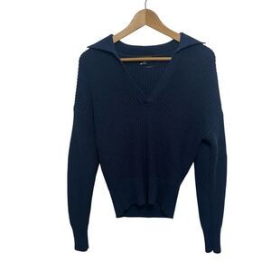 J.Crew Navy Blue Collared Chunky Ribbed Knit Polo Sweater, XS