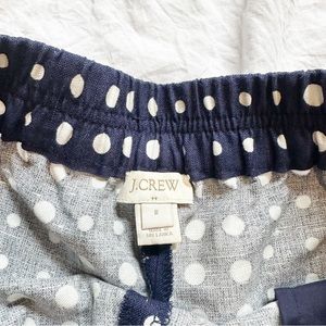 Peep these effortlessly cute and casual pull on boardwalk shorts from J.Crew! Comfortable and stylish, these guys feature a trendy white polka dot pattern on a navy blue background. Elastic waistband. Two slant pockets. Perfect for spring and summer. Linen cotton blend.