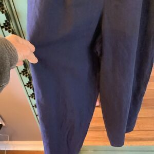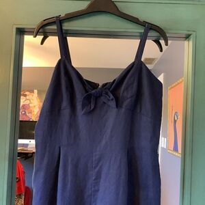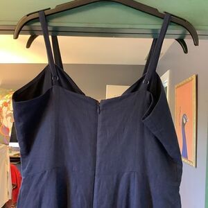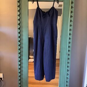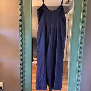 Nice quality, linen cotton blend, fully lined, wide leg, jumpsuit. Dark navy color. Zips in back. Adjustable shoulder straps. Size 8.