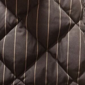 J Crew Navy & White Pinstripe Excursion Quilted Vest, size small. Excellent used condition! Awesome for a great layered look! This is filled with down.