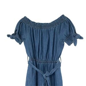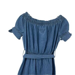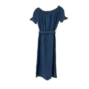 J. Crew Off The Shoulder Chambray Midi Dress Blue Belted Preppy Bohemian Spring Summer Classic With Side Slip Pockets Casual