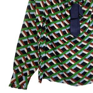 J.Crew Off The Shoulder In Ratti Graphic Diamond Blouse Green Brown Size S