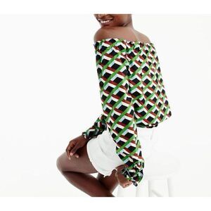 J.Crew Off The Shoulder In Ratti Graphic Diamond Blouse Green Brown Size S