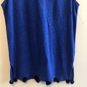 Blue 100% linen tank top by J.Crew. Size XXS. Fine knit construction Pompoms across the hem. Excellent like new condition